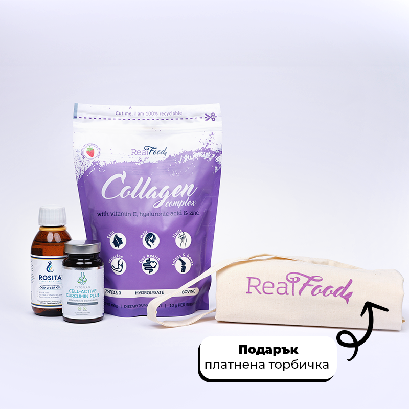 • RealFood Collagen Complex – мощен колагенов комплекс за подхранени стави, еластични сухожилия и здрава мускулна тъкан.