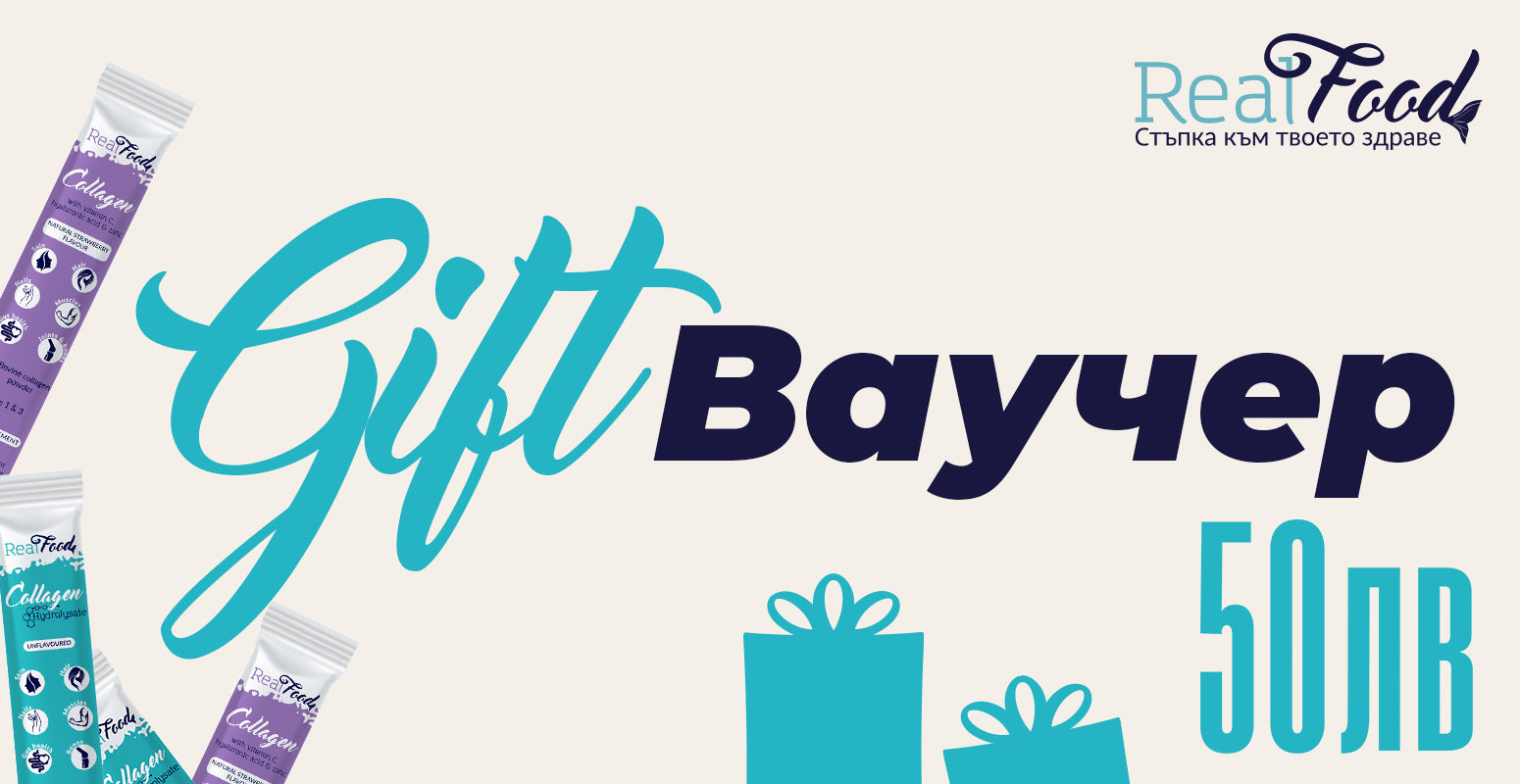 Търсиш подарък, който наистина има смисъл? Избери подаръчен ваучер от RealFood – перфектен за ценителите на висококачествените хранителни добавки, които подкрепят здравето, енергията и естествената красота 🌿